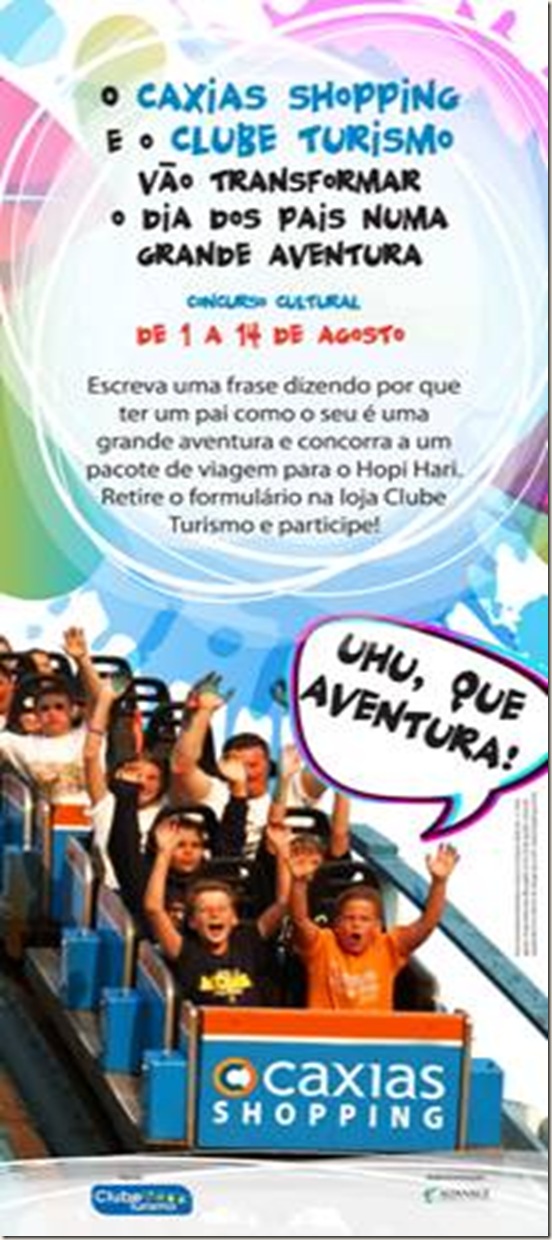 O concurso cultural do Dia dos Pais do Caxias Shopping, em parceria com a loja Clube Turismo, vai premiar com um pacote de viagem para o Hopi Hari o cliente que descrever em uma frase “por quê ter um pai como o seu é uma grande aventura?”.